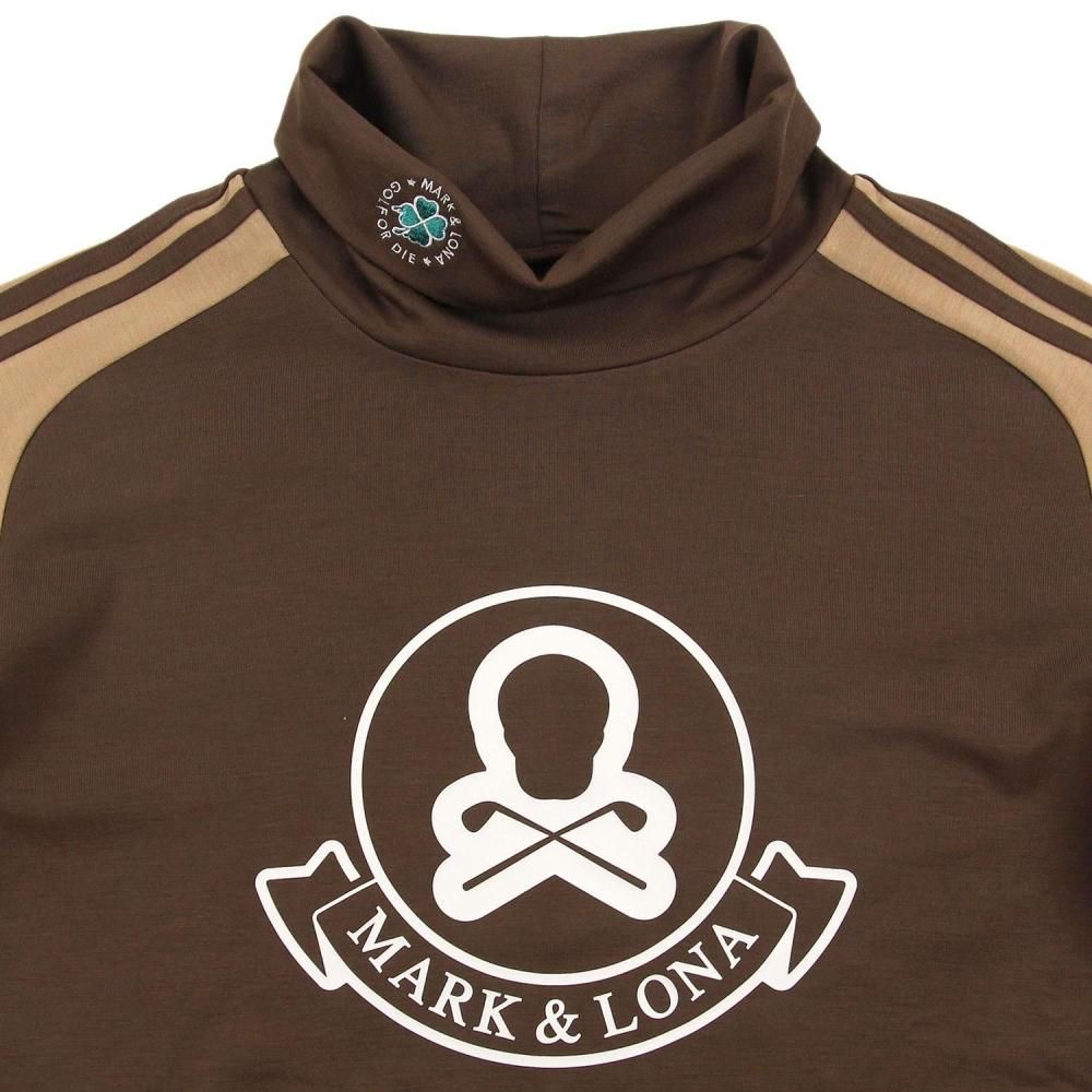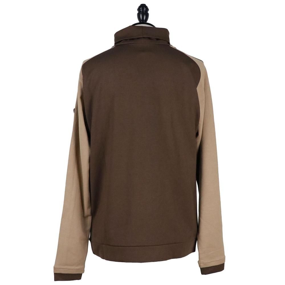 フロントの配色デザインのサークルスカルプリントが象徴的なタートルネックロングスリーブシャツ。