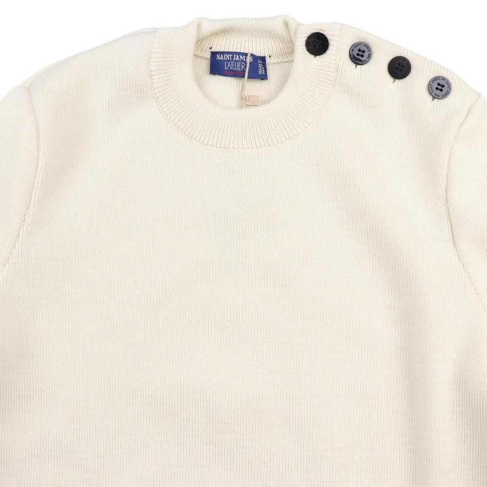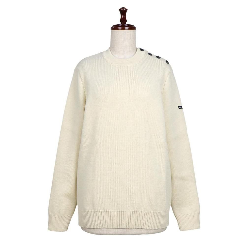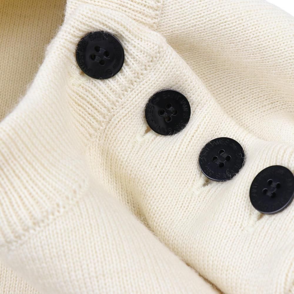 厚手でしっかりとしたピュアウールの肩ボタンニット。