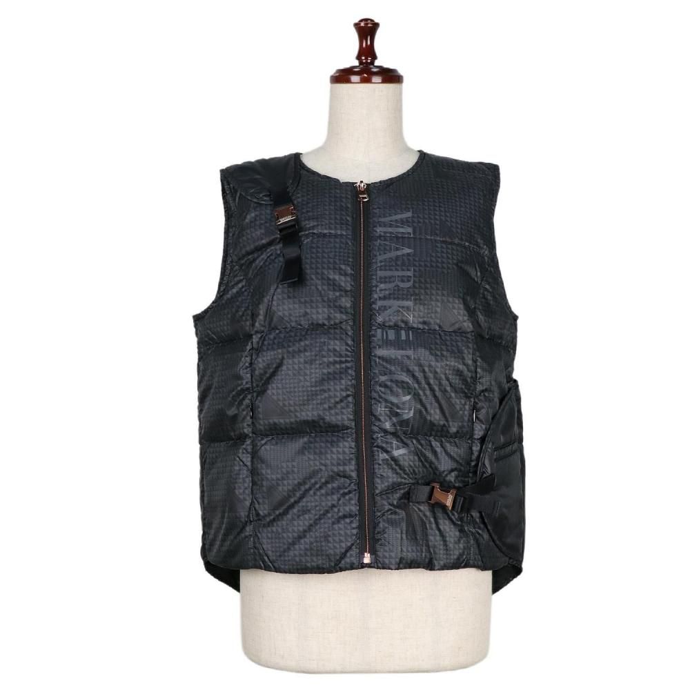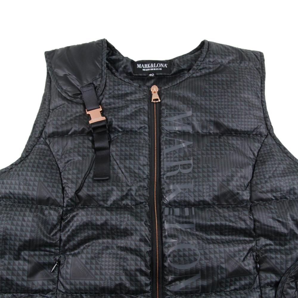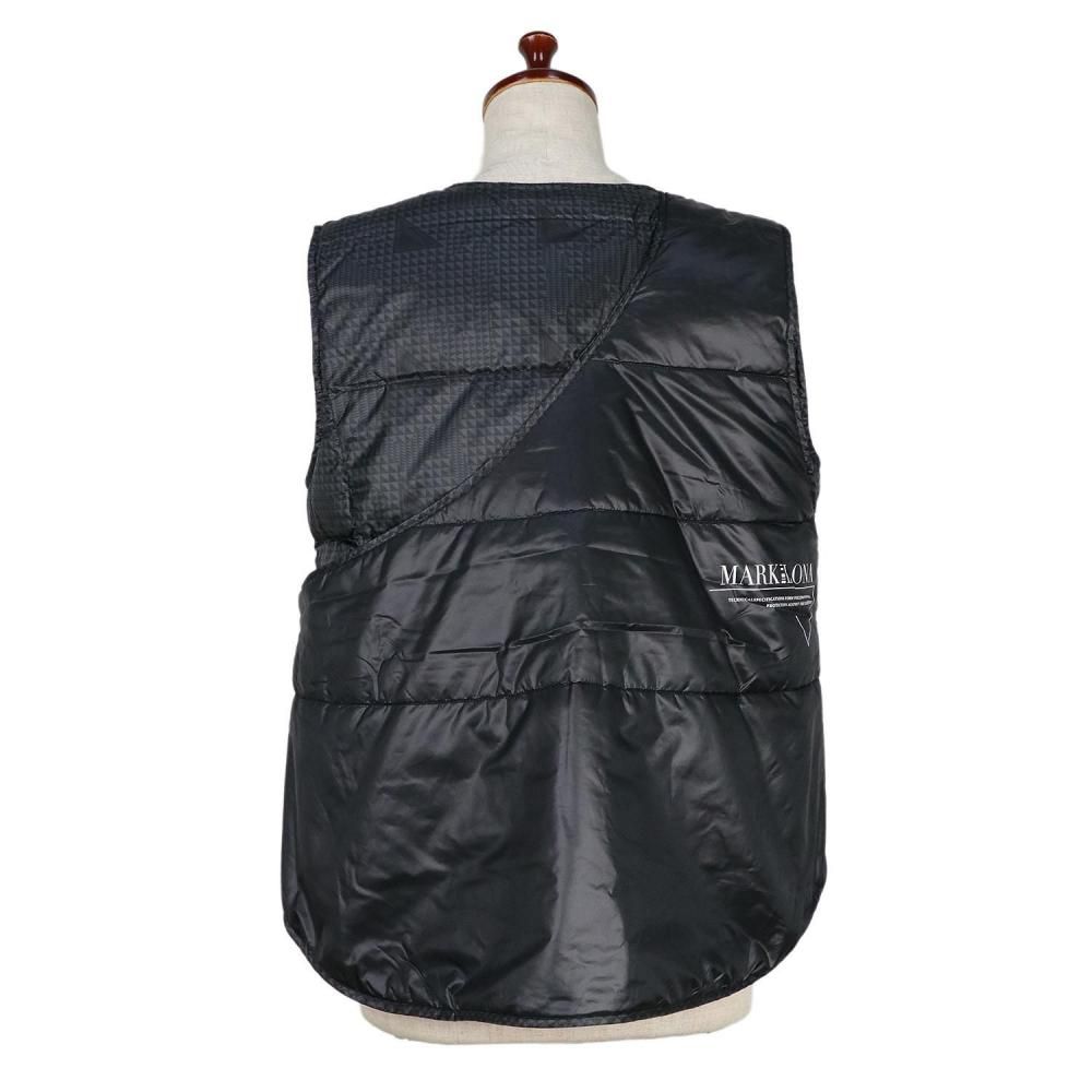 アシンメトリーデザインのダウンベスト。オリジナルのグレンチェックパターンは、ブランドのアイコニックなトライアングルモチーフを巧みに組み込んだこだわりの表現。