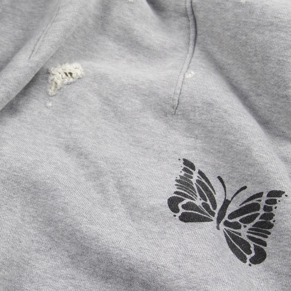 ヴィンテージスウェットのようなリアルなダメージや色褪せの加工が施されたスウェットパンツ。