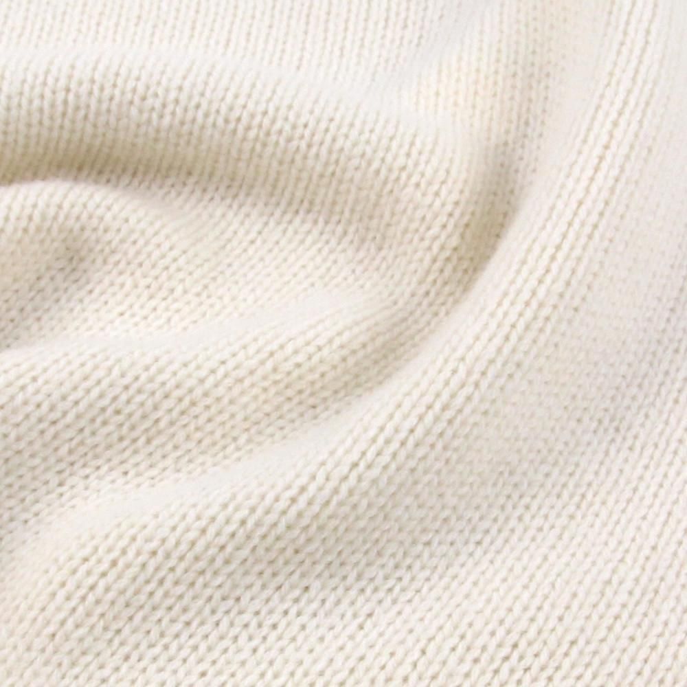 ゆったりとしたボディをベースに、太めの襟リブや編目の流れなどディテールにこだわりリラックスしたニュアンスのある表情に仕上げています。