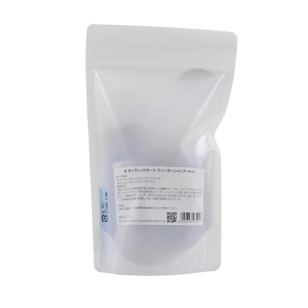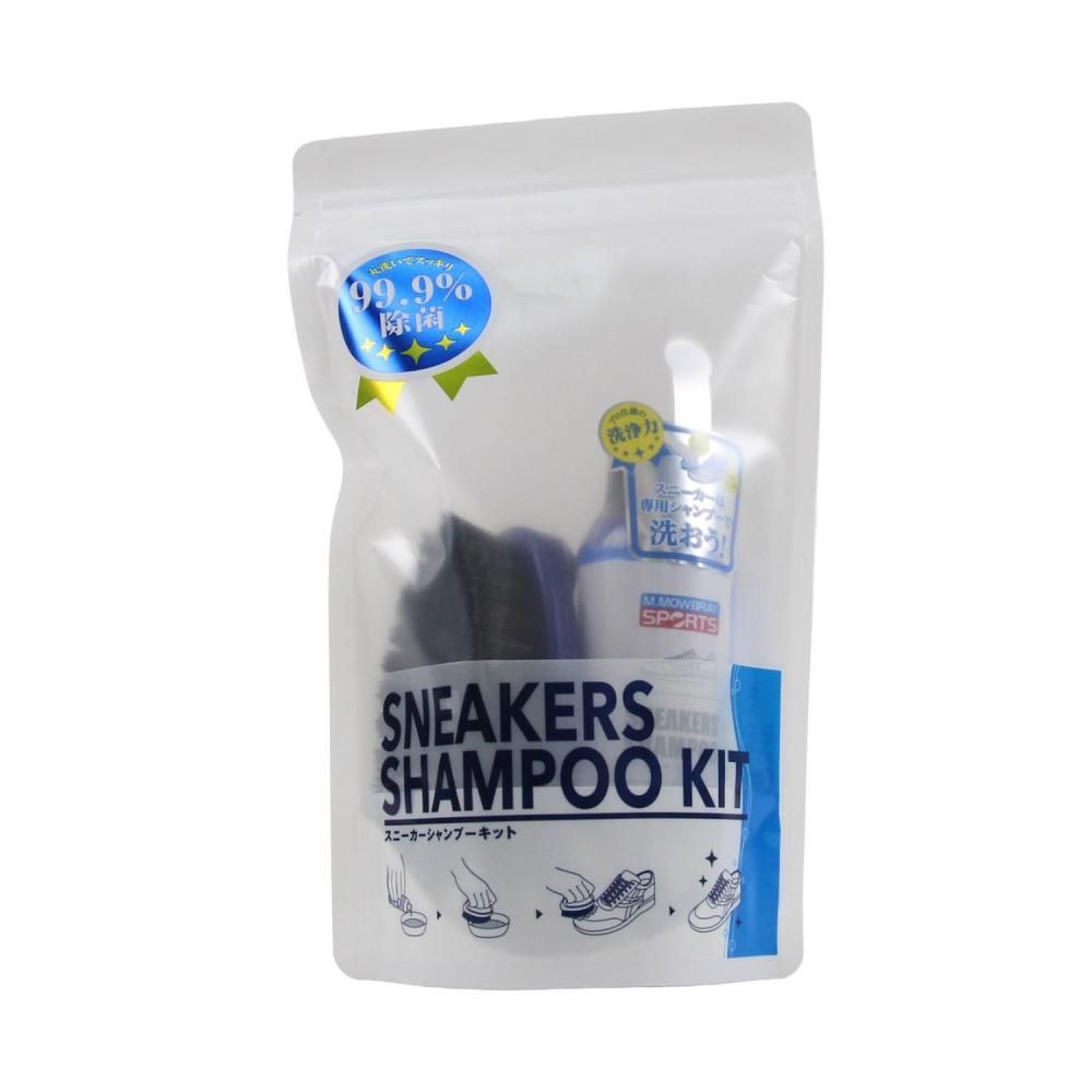 除菌率99.9%のスニーカーシャンプー(1本)と、汚れ落とし用のブラシがセットになったクリーニング用キットです。
