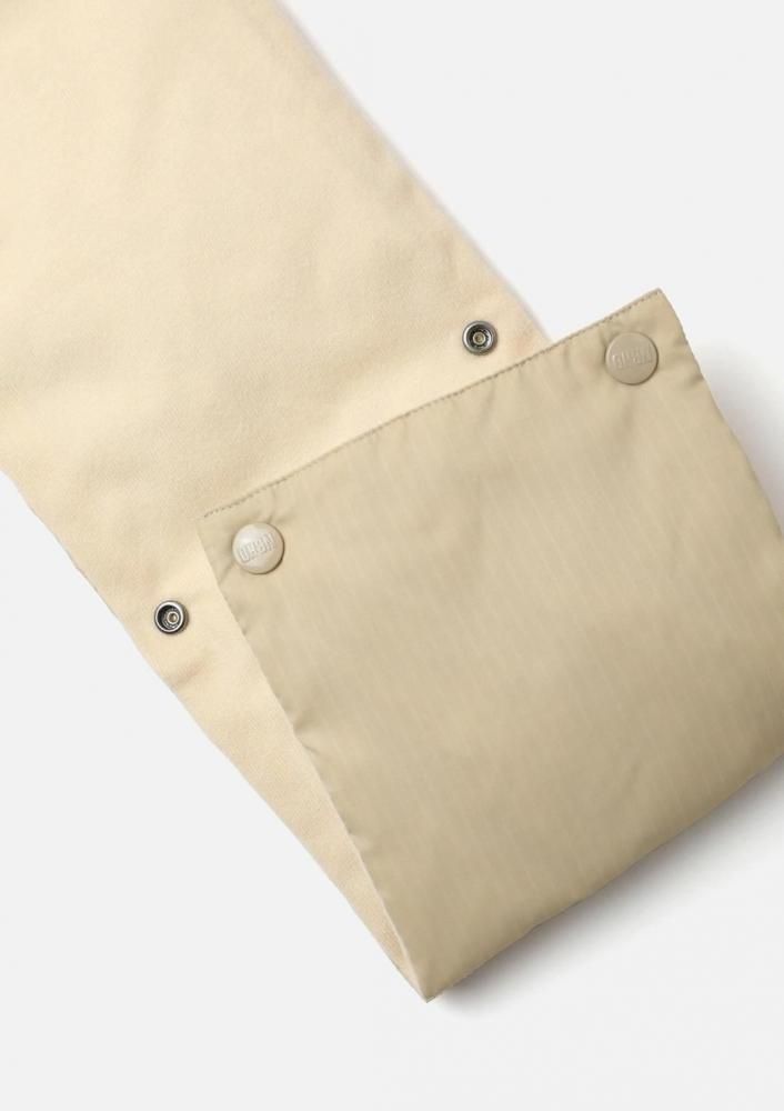 先端にスナップボタンを配置し、片側を通して固定できる2WAY仕様。