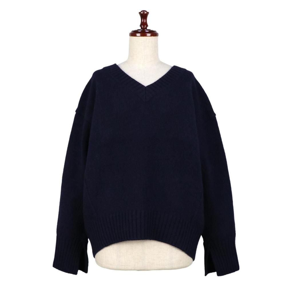 Vネックプルオーバーはゆったりとしたシルエットでリラックス感がありつつも、やや横に広いVネックラインですっきりとした印象に。