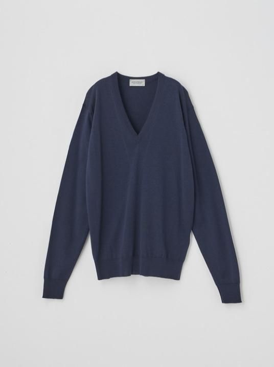 JOHN SMEDLEY定番のVネックプルオーバー。幅を狭く、やや深めに設定されたVネックは顔周りをシャープに美しく見せる絶妙なデザイン。1枚着としてはもちろん、ジャケットのインナーなど、オンオフを問わず活躍するアイテムです。