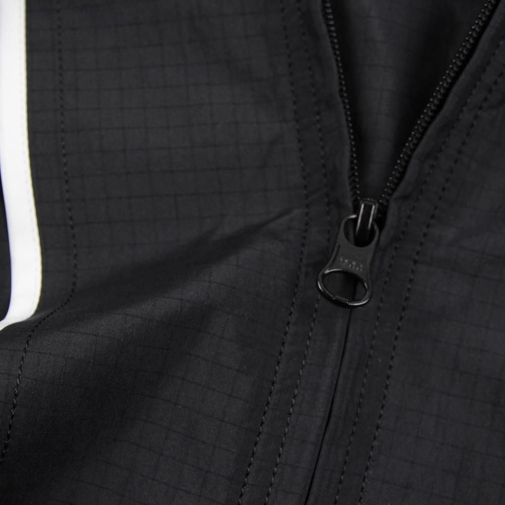 リサイクルポリエステル100%のリップ素材を用いたジップアップブルゾン。