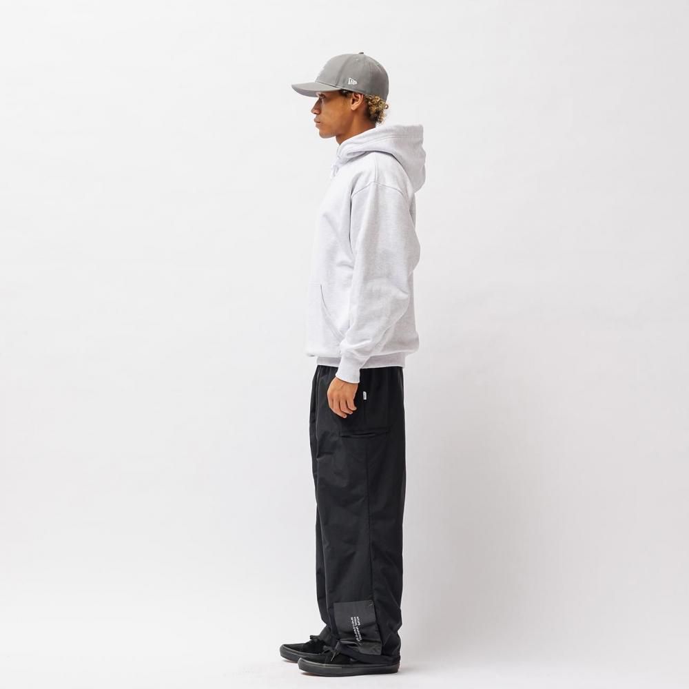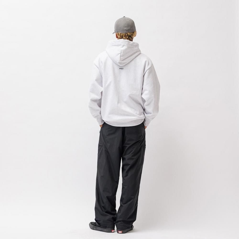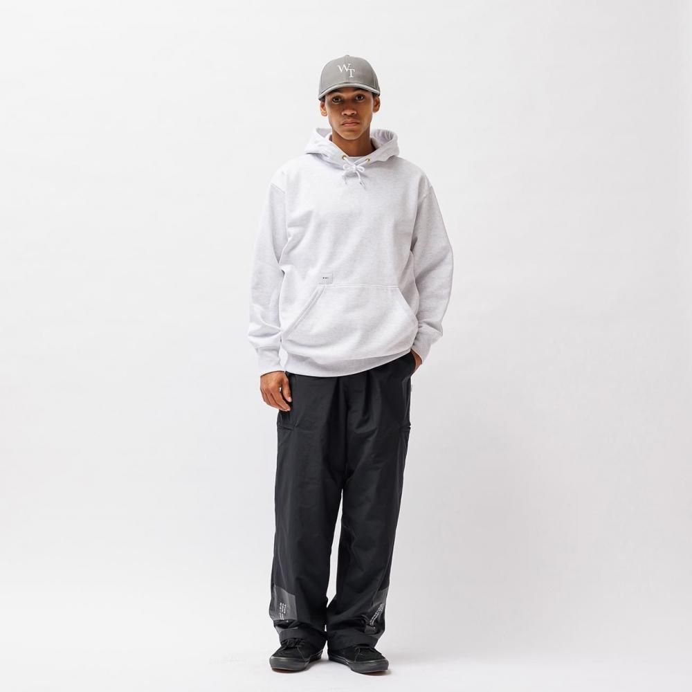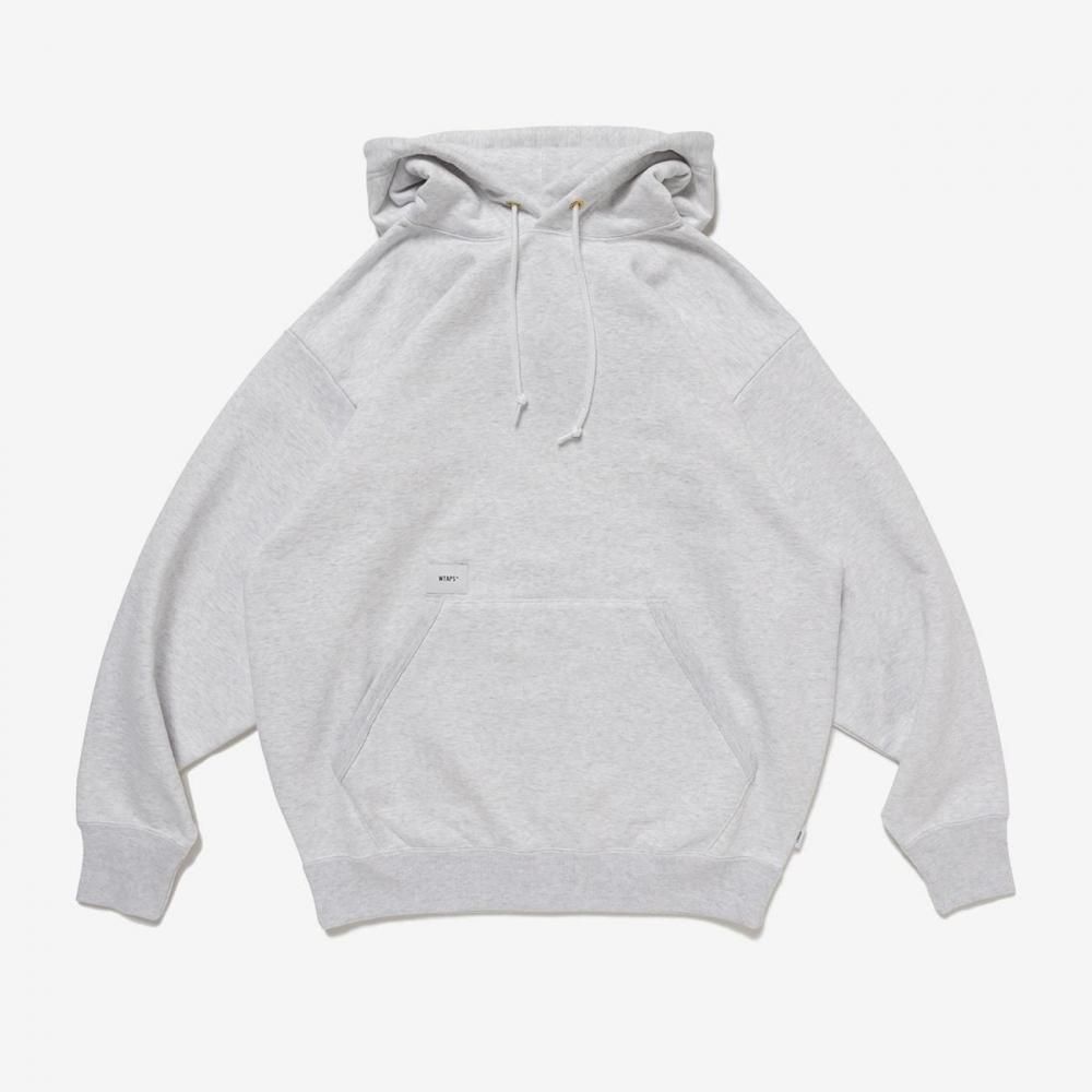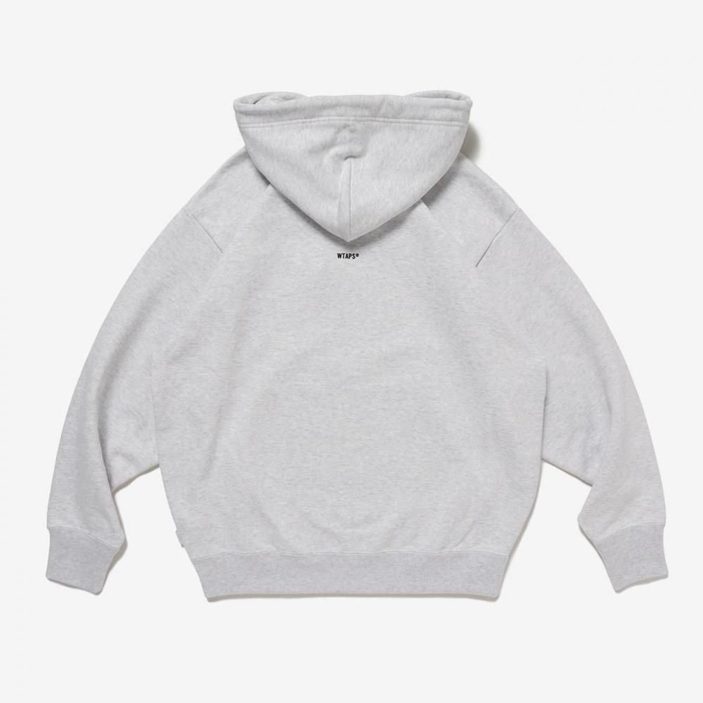 厚手の度詰め裏起毛生地を使用したプルオーバーフーディー。アームホール広めのゆったりしたシルエットが特徴。バックに刺繍モチーフを配置。