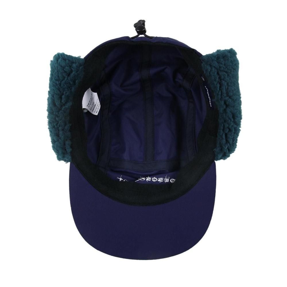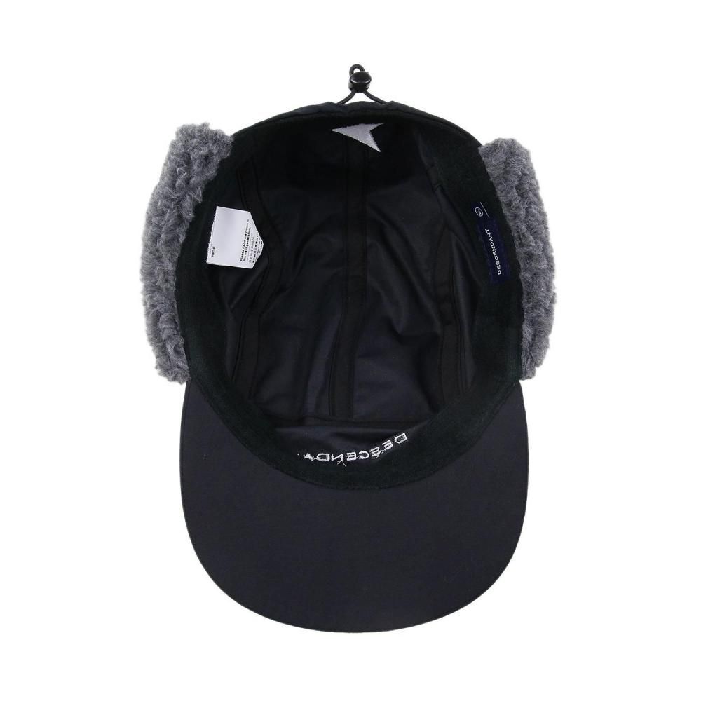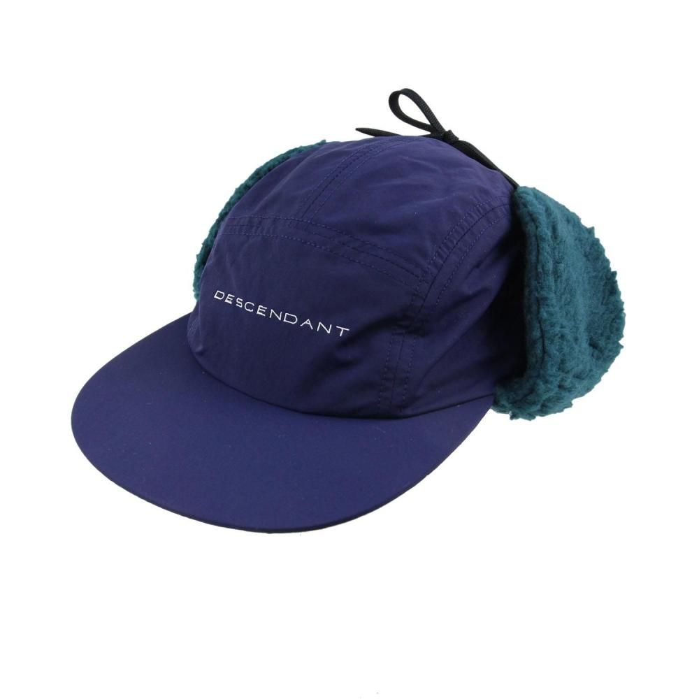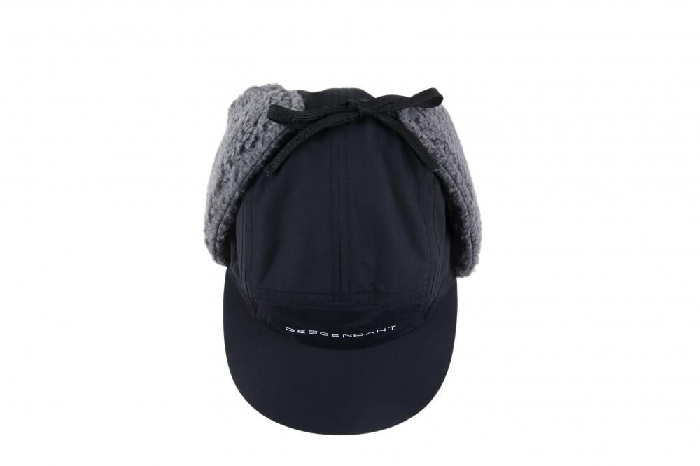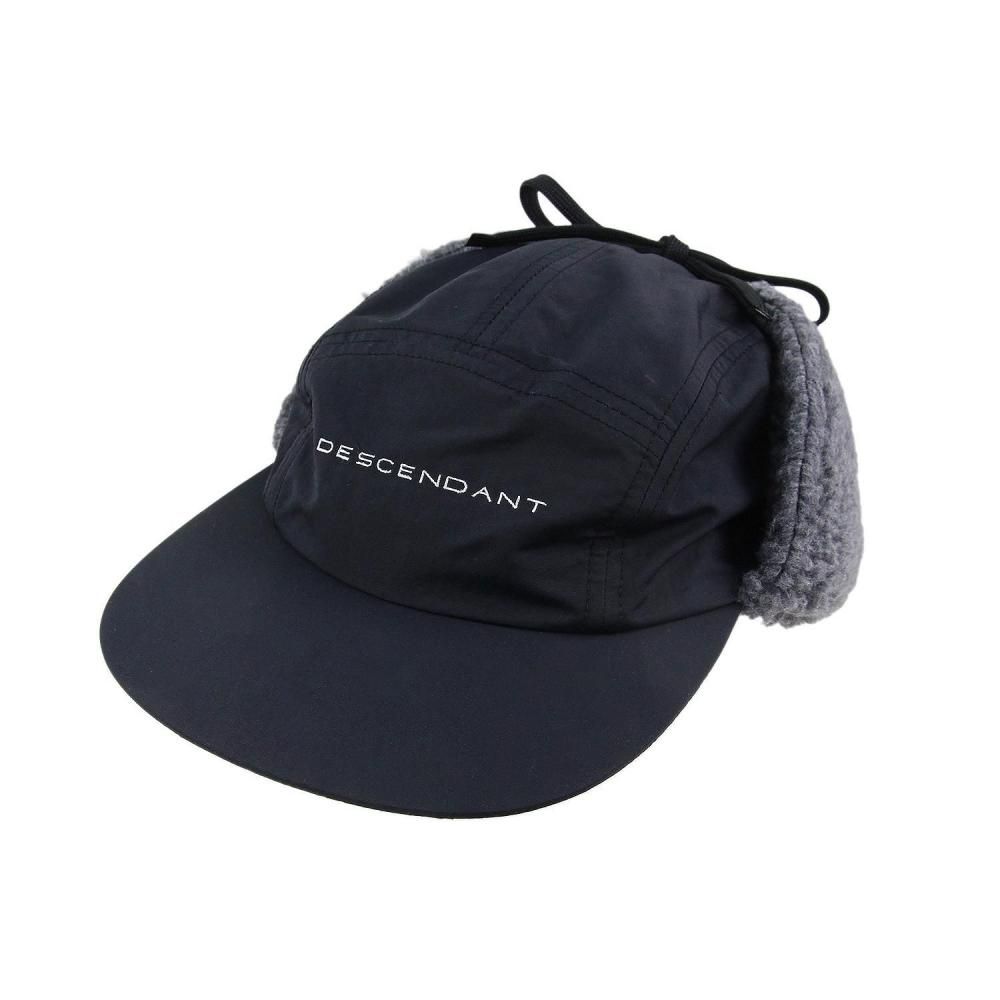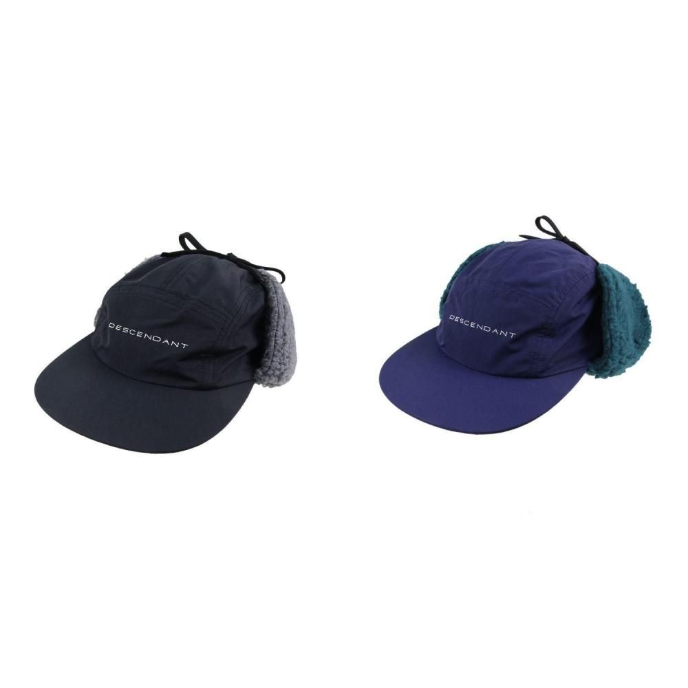 ナイロンタッサーを使用した5パネルキャップに、ボアパイルフリース製のイヤーカフを付属した2WAY仕様。イヤーカフの紐は折り畳む際とアゴ紐にも対応。フロントパネルにDESCENDANTの刺繍ロゴ、背面にCETUSの刺繍ロゴとドローコードアジャスター付き。