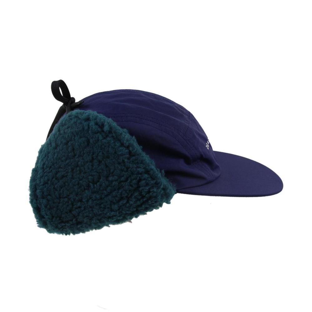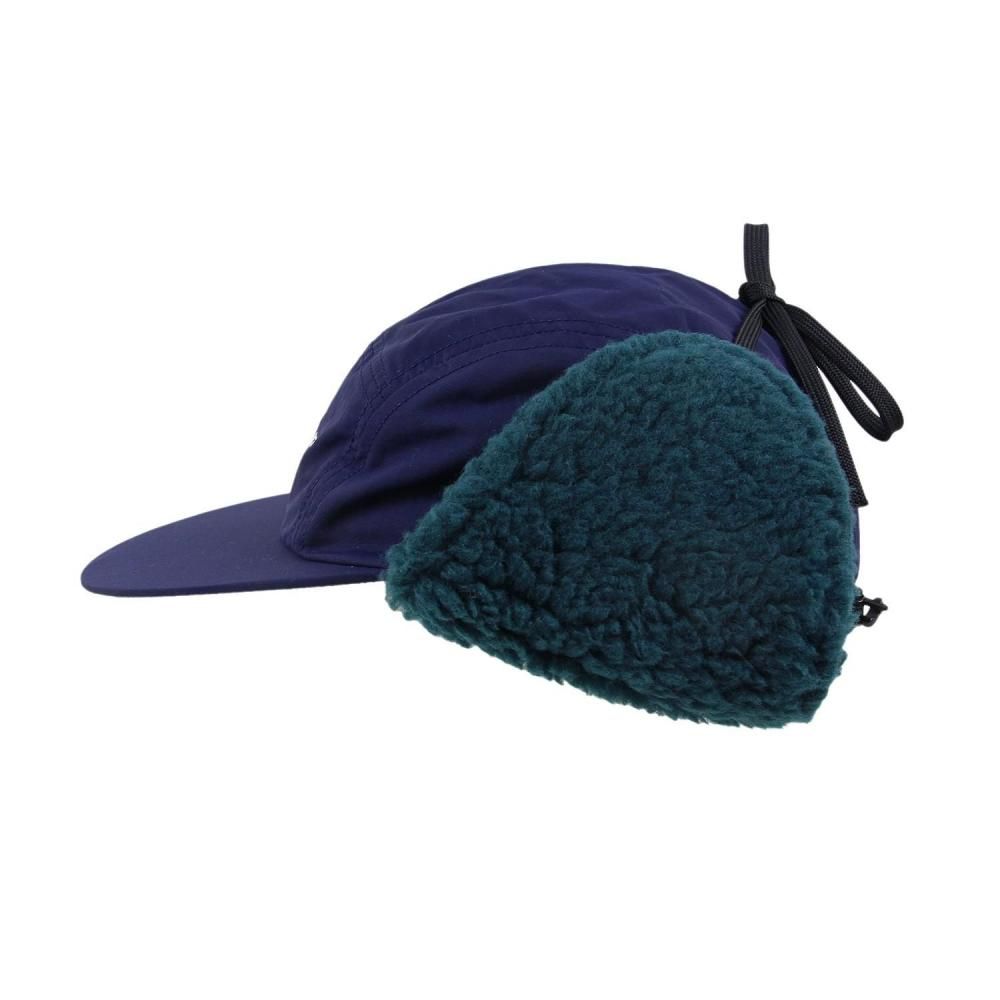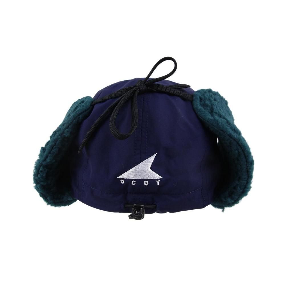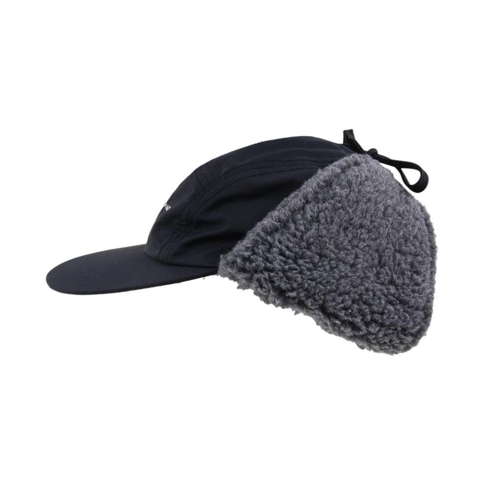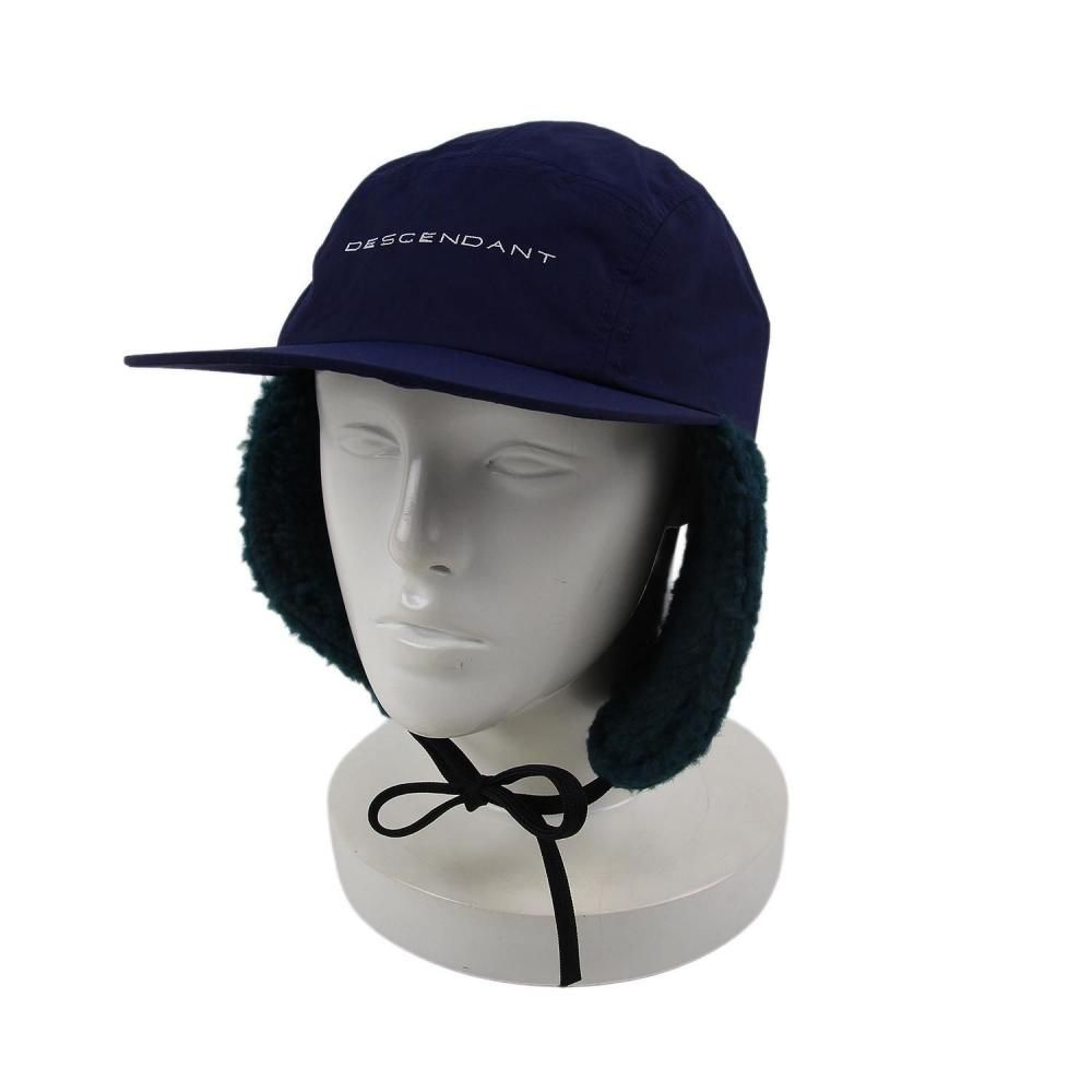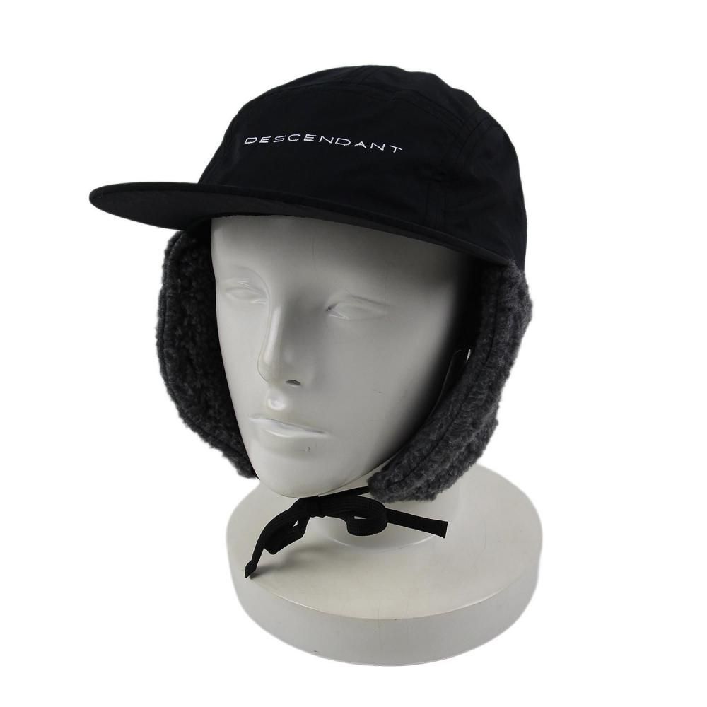 ナイロンタッサーを使用した5パネルキャップに、ボアパイルフリース製のイヤーカフを付属した2WAY仕様。イヤーカフの紐は折り畳む際とアゴ紐にも対応。フロントパネルにDESCENDANTの刺繍ロゴ、背面にCETUSの刺繍ロゴとドローコードアジャスター付き。