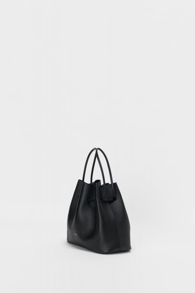 開口部の2本の紐は、両サイドから引くと巾着型に、中央から引くとトートのように持つことができ、用途や気分に応じて2通りの持ち方が楽しめます。