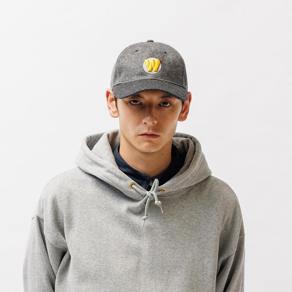 ウール/ナイロン混紡のフラノ生地を使用したミッドクラウンタイプの6パネルボールキャップ。バイザーとクラウンが配色のバイカラーの仕様。フロントとバックに刺繍モチーフを配置。シンセティック素材のアジャスターで調節可能。