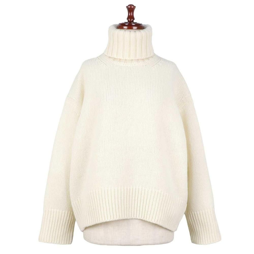 タートルネックプルオーバーはゆったりとしたボディとしっかりと立ち上がるハイネックのバランスにこだわり、ブランドらしいリラックスしたニュアンス感のある表情に仕上げた一着。