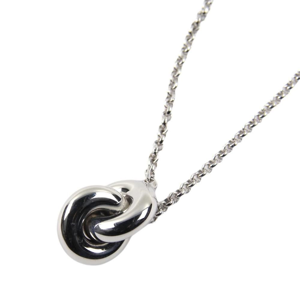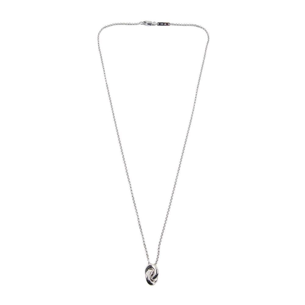 対照的な質感の二つの連結サークルを組み合わせたダブルペンダントです。
